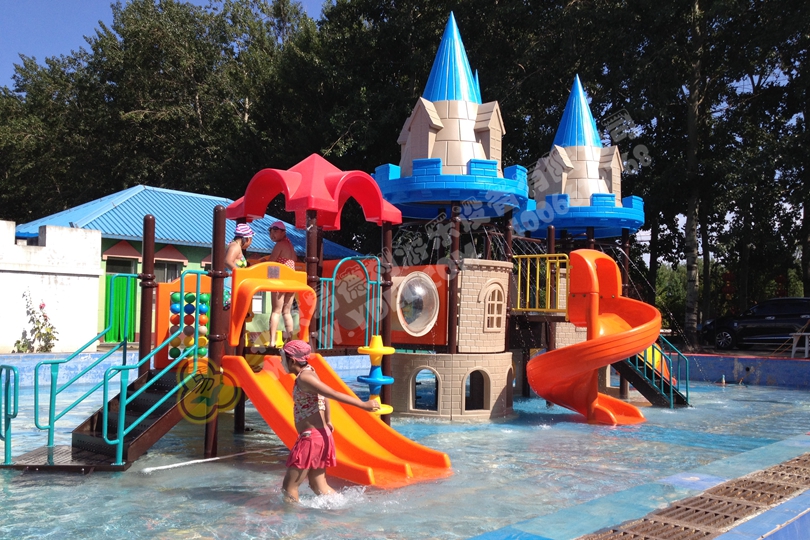 水秋千、水上蹺蹺板,看孩子們玩得不亦樂乎!大氣的城堡大滑梯加入水上行列也是毫不遜色,正立池水中央....