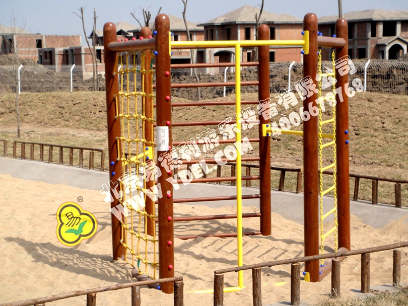 全木質戶外拓展設備,功能齊全,趣味性和鍛煉性并舉。吊環、攀爬,曲環相繞網龍,障礙攀爬,新奇五邊錐形爬網,各種功能拓展項目就在易德利。
