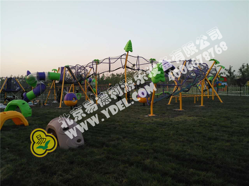 大型太空漫步戶外拓 展組合,網(wǎng)繩通道迂回曲 折, 空中環(huán)繞,孩子們?cè)趹铱罩信佬校叩推?伏。一棵棵東倒西歪“小樹”穿插其中,讓孩子們感受到仿佛在異形的森林中穿梭漫走,異常新奇和歡樂!